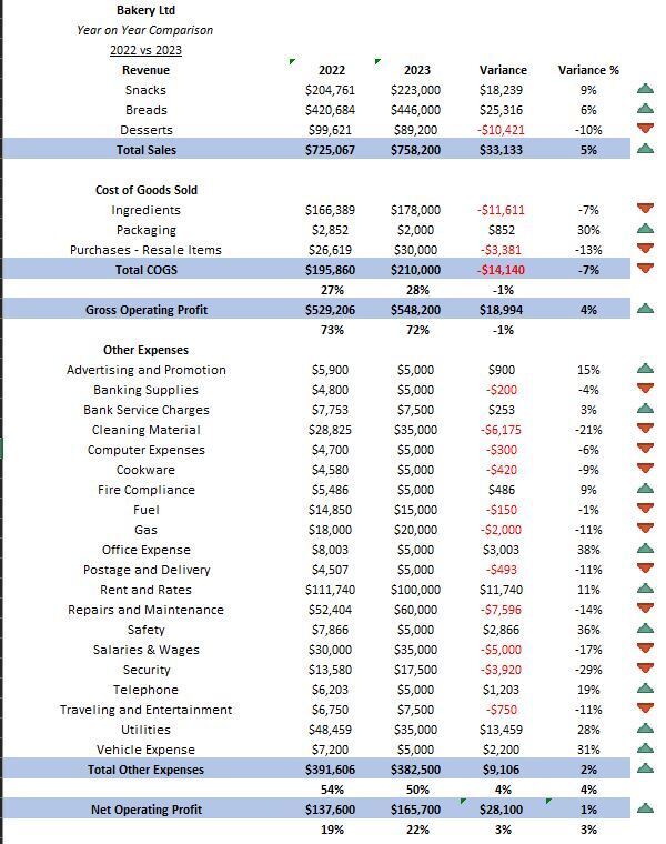 - This worksheet shows you the year on year comparison of your business detailing line by line top to bottom to fully be able to see and understand your business performances