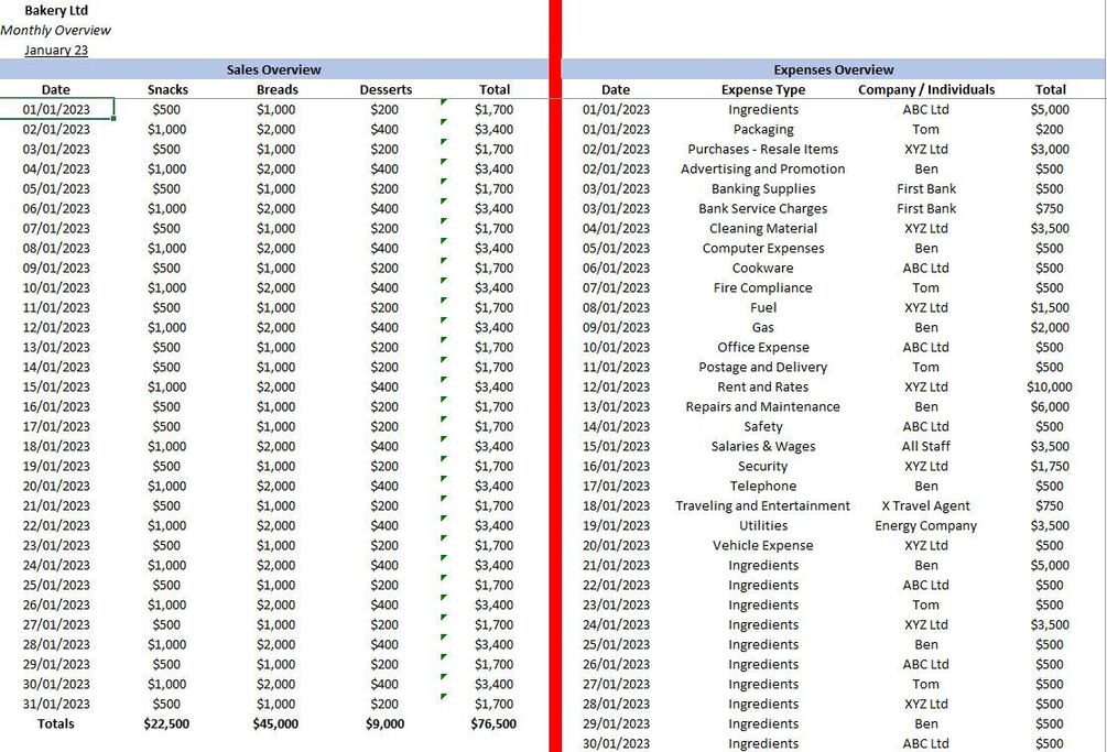 Welcome to the simple and easy way to manage your bakery finances. This template will help you record your daily transactions in a swift and easy way. Worksheets below highlight functionality: