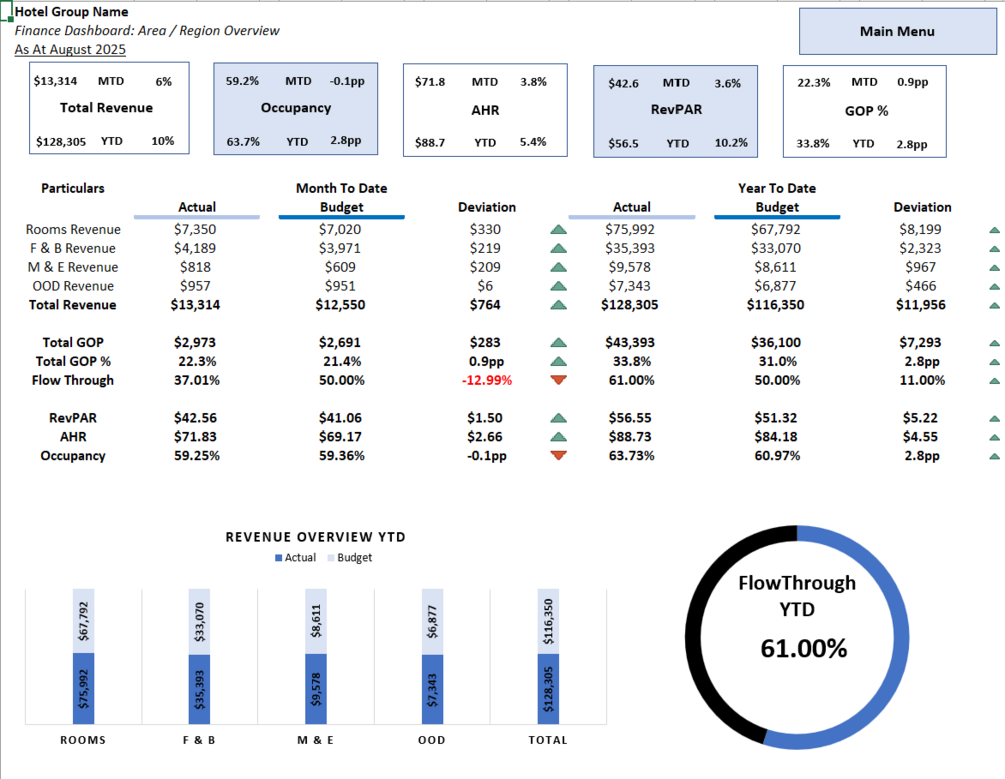 Visualize your Area / Region Hotel financials and make key decisions much more easily and effectively.